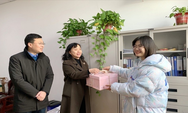 了解到金融182班黄钊婷同学在2月10日过生日,公司领导前往黄钊婷寒假实习的保卫处,与她交谈,详细了解了其学习、生活情况,并为其送上生日蛋糕与新春祝福,鼓励她在新的一年里做好个人规划,强化能力提升,取得更大进步。