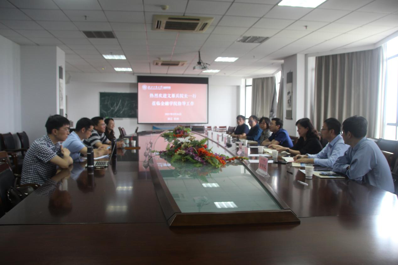 5月26日下午,3044永利经理文雁兵、党委书记施敏颖、副经理李亚、经理助理孙庆刚及金融系、经济系、国际经济与贸易系主任一行7人赴浙江工商大学金融公司调研和交流。