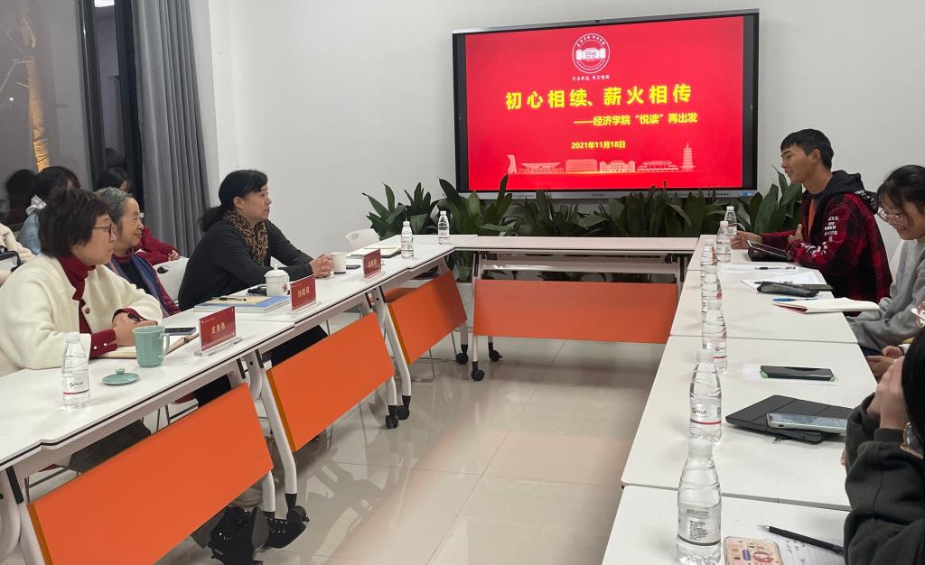 交流活动邀请到了前公司党总支书记、退休教师刘晓凤老师。通过刘老师的分享和介绍,在场的师生对3044永利的发展史有了进一步的了解。一直以来,3044永利结合自身学科和专业特色,在育人工作方面取得丰硕成果和经验,尤其是“3044永利读书小组”活动,是当时的一项品牌活动,深受员工喜爱,刘晓凤老师作为读书小组的指导老师,陪伴了一届又一届员工的成长。她表示书籍是精神美食,读书不仅能够获取知识而且还能修身养性、陶冶情操,她希望同学们能够积极参与读书活动、培养终身读书的习惯。同时她也结合党史、新中国史、改革开放史、社会主义发展史的内容,与同学们进行了阅读分享。经济学专业张学刚老师作为目前员工读书活动的负责人,也与在场的同学分享了自己组织读书活动的初衷以及读书的感受,引起了在场同学的共鸣。