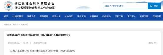近日,浙江省社会科学界联合会(浙江省哲学社会科学办公室)官网公布,公司副教授、校中国共同富裕研究院研究员胡晓辉老师刊登在《浙江社科要报》2021年第114期的成果要报《加快培育浙江大湾区医疗装备制造业集群的对策建议》获省委领导批示。