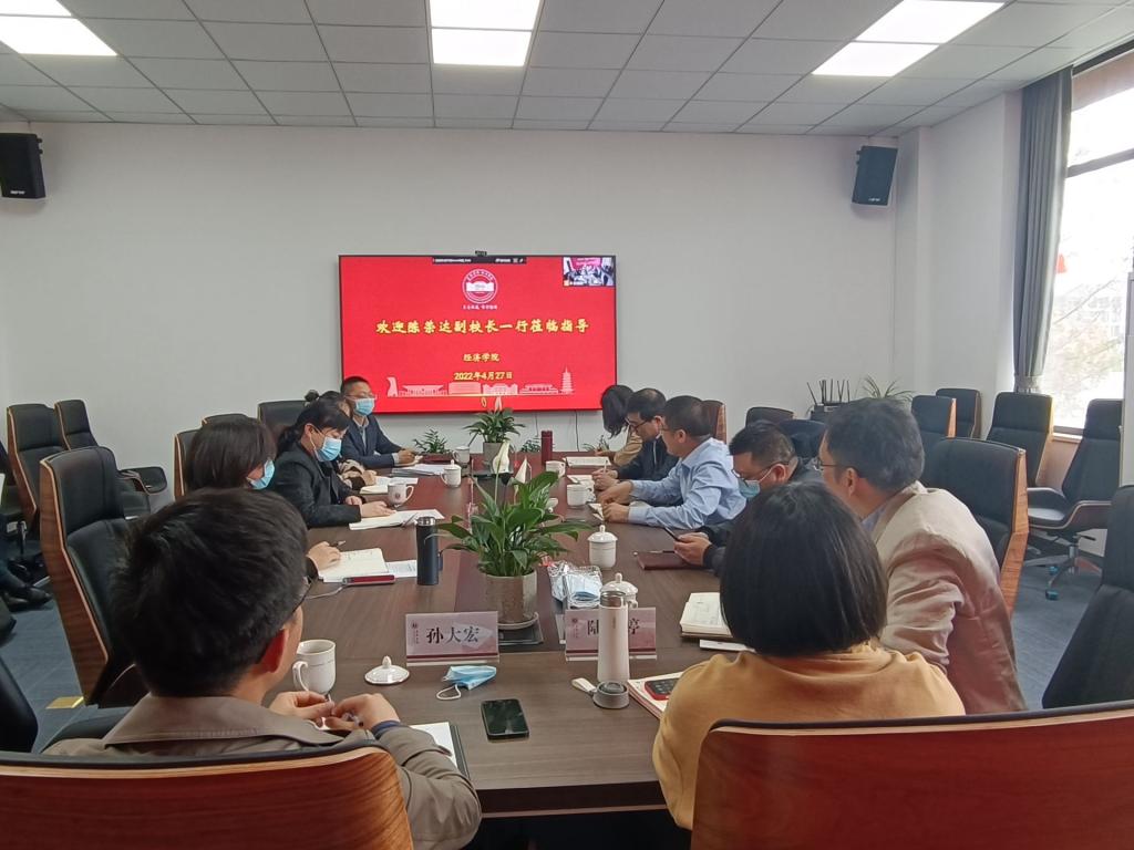 4月28日上午,陈荣达副董事长一行来3044永利调研指导工作,研究生处处长李蕾、人文社科处处长彭冰冰、教务处副处长王敏、发展规划处副处长温晓娣等陪同调研,公司党政班子成员以及各系、办、中心主任参加了本次调研。