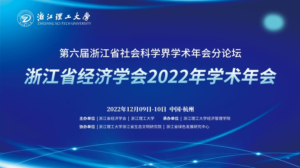 2022年12月10日,第六届浙江省社会科学界学术年会分论坛——浙江省经济学会2022年学术年会在浙江理工大学召开。本次年会由浙江省社会科学界联合会指导,浙江省经济学会、浙江理工大学主办,浙江理工大学经济管理公司承办,浙江省哲学社会科学重点研究基地—浙江理工大学浙江省生态文明研究院、浙江省高校新型智库—浙江省绿色发展研究中心协办。来自杭州、宁波、温州、金华、嘉兴、衢州等多地高校专家学者线上线下联动参会,以“高质量发展与共同富裕:理论创新与浙江实践”为主题,学习探讨最新研究成果,共同推进浙江高质量发展建设共同富裕示范区深入探索。