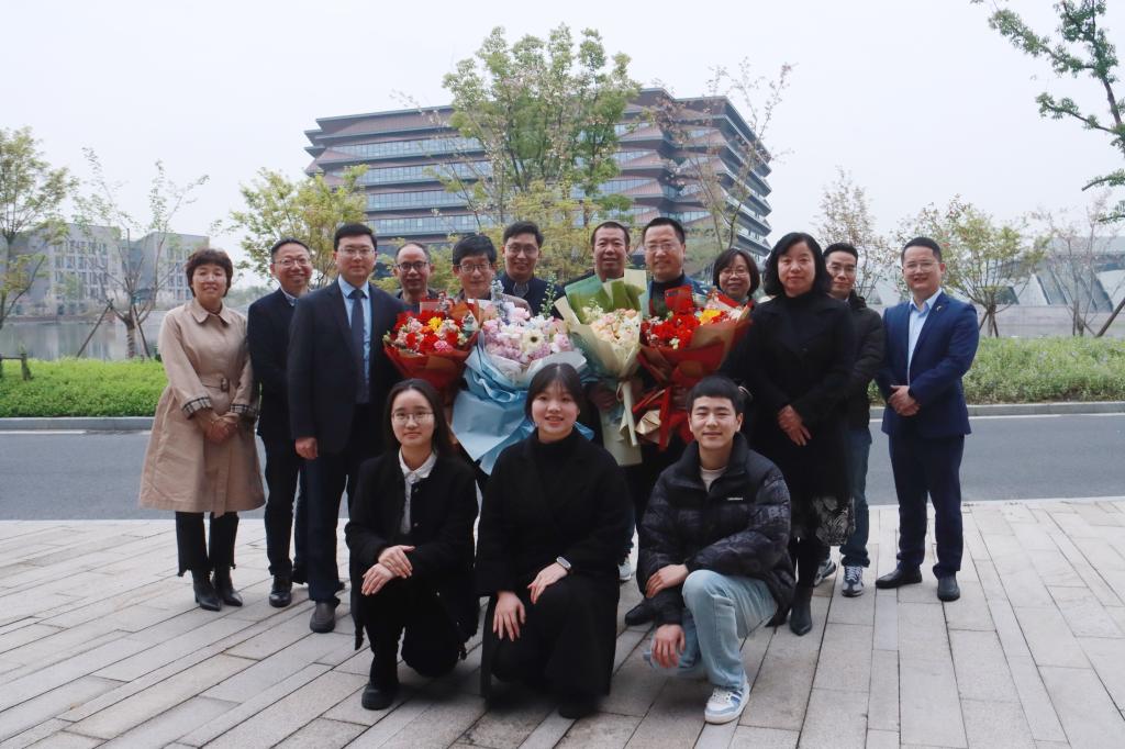 荣退仪式上播放了由公司员工精心为两位退休老师录制的祝福视频。特别令人感动的是,一位闻讯而专程赶来现场的员工,现就职于浙江泰隆商业银行股份有限公司嘉兴分行的项斌主任,为两位退休老师送上了鲜花和祝福。
