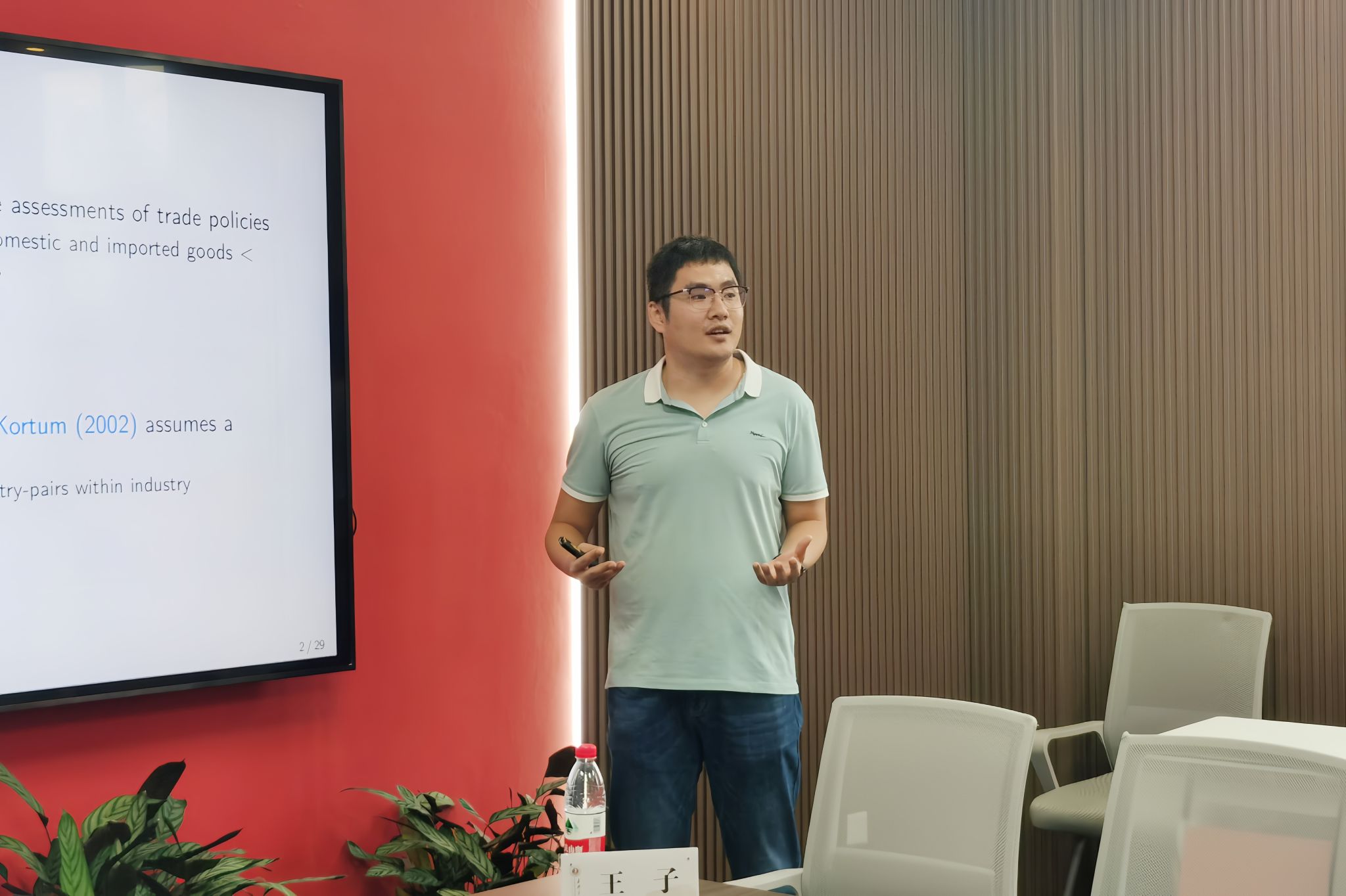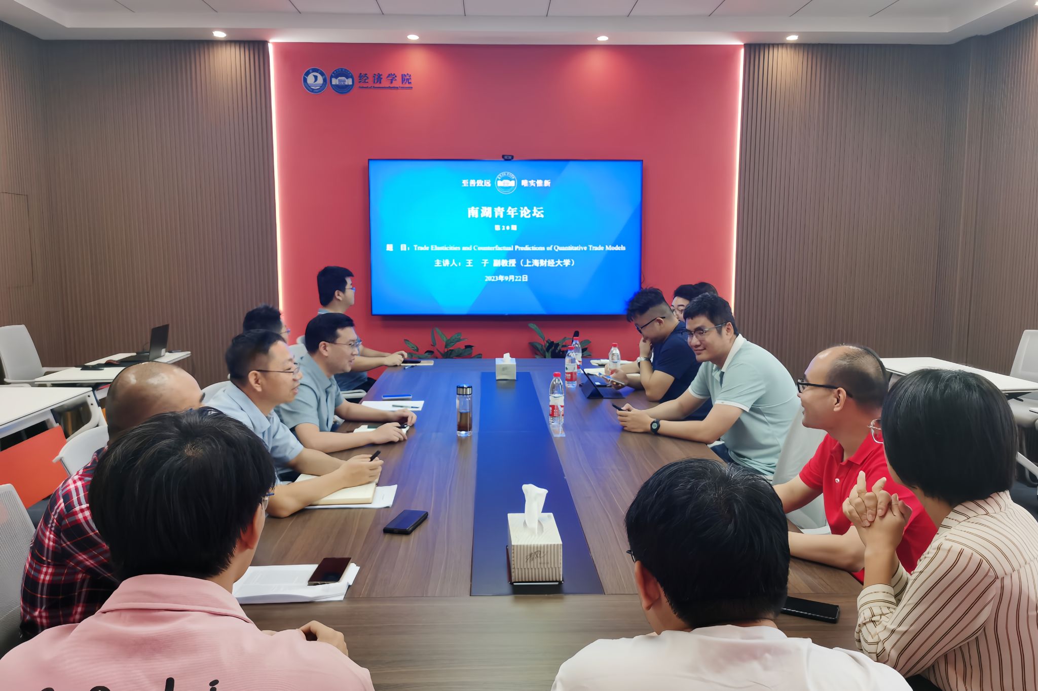 9月22日上午,3044永利在尚德楼268会议室成功举办第20期南湖青年论坛。上海财经大学王子副教授(长聘)应邀作题为《Trade Elasticities and Counterfactual Predictions of Quantitative Trade Models》的学术报告,3044永利经理文雁兵教授主持,公司多名教师共同参与研讨。