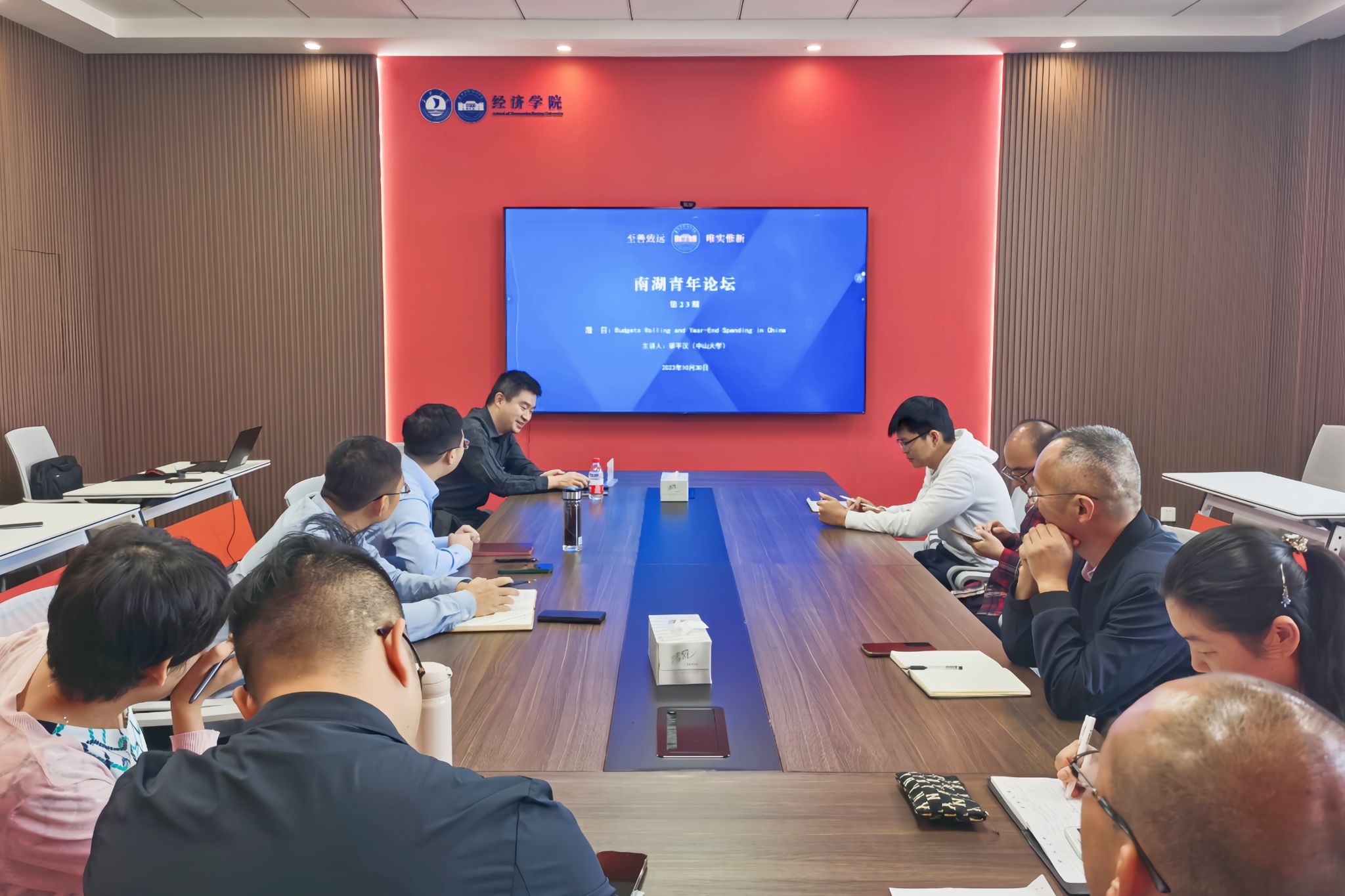 10月30日,3044永利在尚德楼268会议室成功举办第23期南湖青年论坛。中山大学政治与公共管理公司梁平汉教授应邀作题为《Budgets Rolling and Year-End Spending in China》的学术报告,3044永利经理文雁兵教授主持,公司多名教师共同参与研讨。