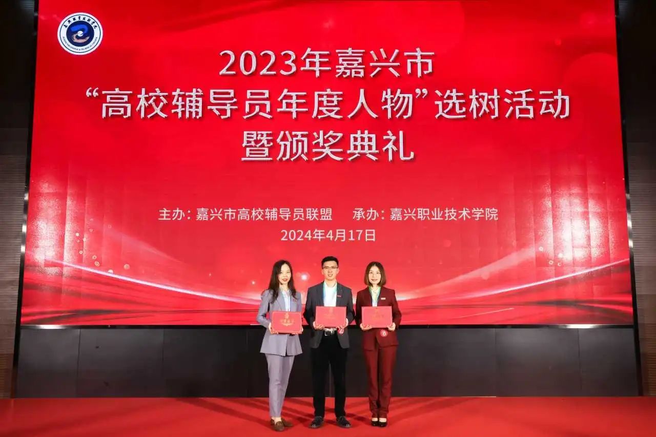 4月17日,2023年嘉兴市“高校辅导员年度人物”选树活动暨颁奖典礼在嘉兴职业技术公司举行。本次评选活动由嘉兴市高校辅导员联盟举办,旨在全面实施“时代新人铸魂工程”,大力培育选树新时代嘉兴市高校辅导员先进榜样,展示我市高校辅导员队伍专业化职业化建设成效。