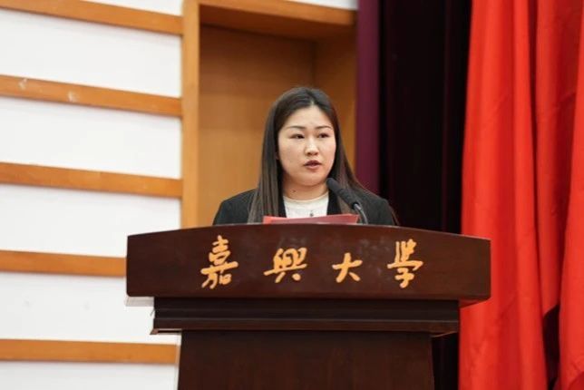 校员工会主席团成员平帅楠代表校员工会向大会表达祝贺。她强调了员工会在思想政治引领、学风建设、活动创新、权益保障等方面的重要职责,并对新一届员工委员会委员提出了加强思想意识、优化工作队伍、创新文化活动、提升服务能力的建议。