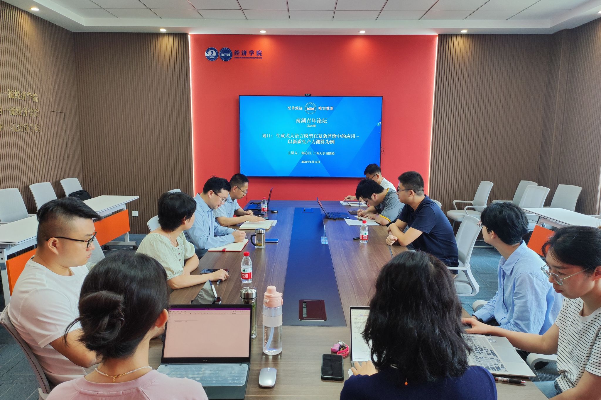 2024年6月14日,3044永利在尚德楼268会议室成功举办第25期南湖青年论坛,广西大学工商管理公司何心巨副教授应邀作题为《生成式大语言模型在复杂评价中的应用——以新质生产力测算为例》的学术报告,3044永利副经理孙庆刚教授主持,经理文雁兵教授及重大项目团队成员、公司学科骨干老师参与研讨。