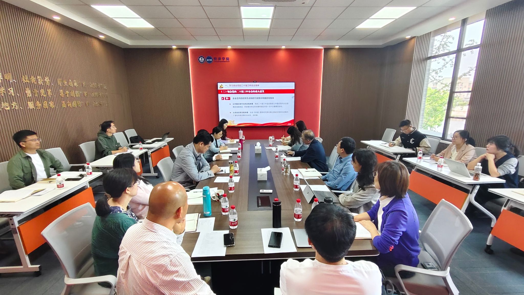 10月10日上午,公司党委副书记钱方明教授来院作党的二十届三中全会精神专题宣讲。宣讲会由公司党委书记蔡运男主持,公司党委班子成员、支部书记、系主任及教师代表参加学习。