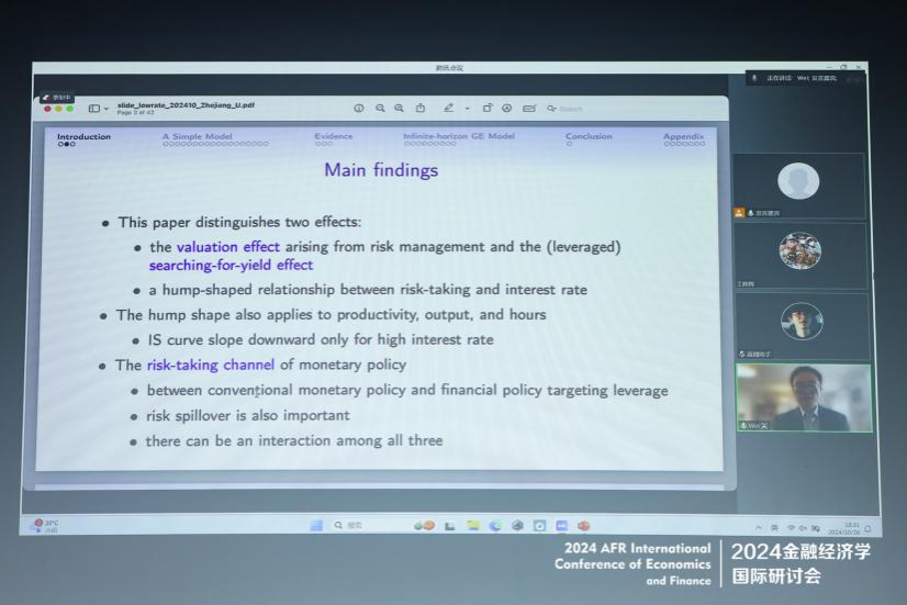 伦敦大学公司经济学系长聘副教授崔巍做“Risk-taking with Financing Constraint”的主题演讲。文章探讨了融资限制如何影响企业在生产过程中承担风险的行为。研究发现,企业的风险承担行为受到杠杆收益及其相关风险的显著影响。我们的研究结果显示,信贷条件的放松既可以促进也可以抑制社会生产中的风险承担。具体来说,在降息之后,企业在低利率环境下不太愿意冒险,而更倾向于在高利率环境下增加风险承担。这种差异导致了利率与企业收益在整体水平上的分散度之间呈现出非单调的驼峰型关系。当企业的风险承担行为能够提升整体生产率时,IS曲线也可能出现驼峰形状。此外,最优利率的存在取决于回报溢出和杠杆约束的程度。因此,关注资产质押性和风险溢出的金融监管政策可能会对利率政策的有效性产生重要影响。