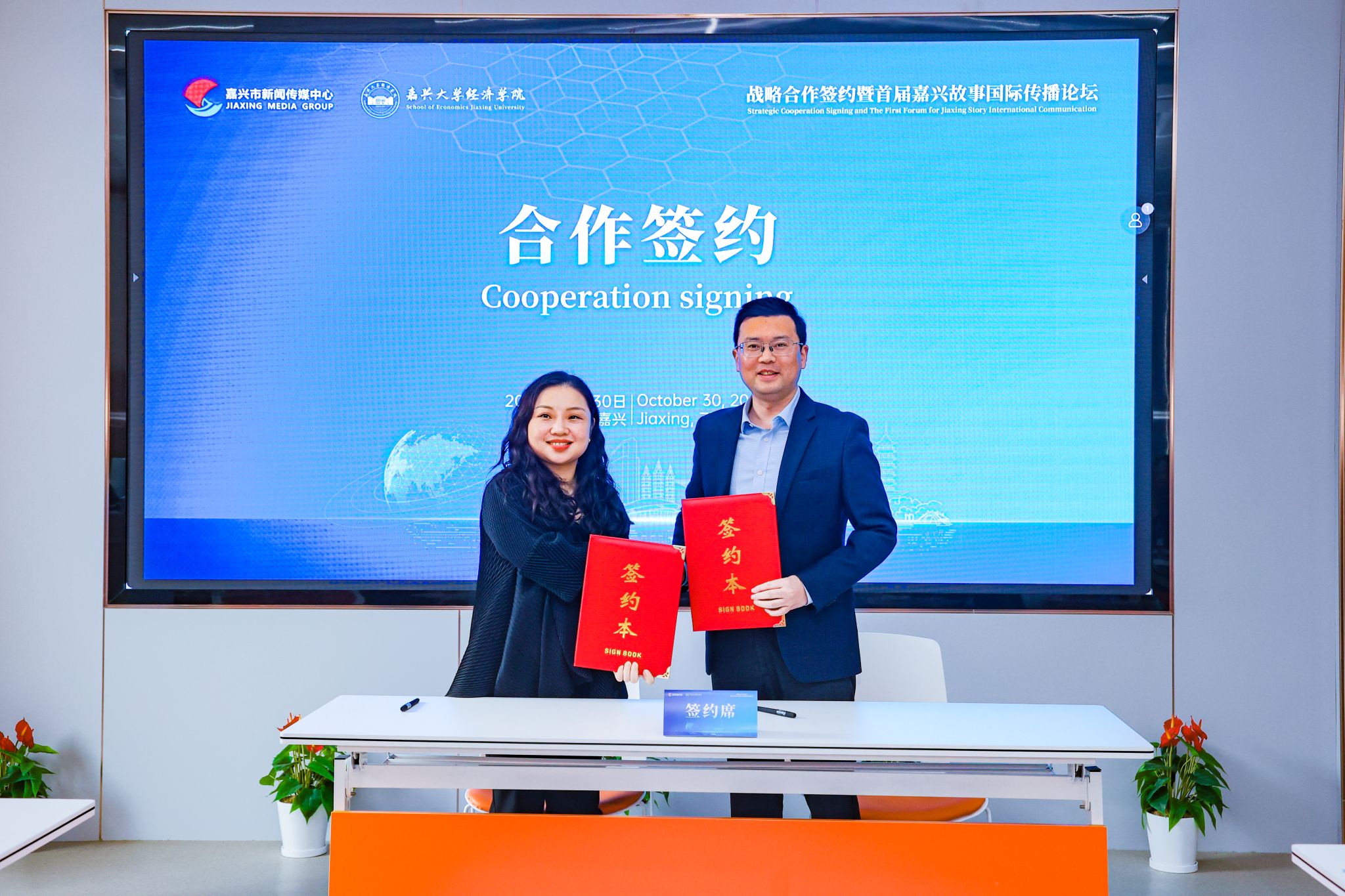 公司经理文雁兵与嘉兴市新闻传媒中心副主任、副总编辑杨洁代表双方签署了战略合作协议。