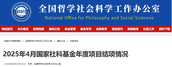 2025年4月国家社科基金年度项目结项情况