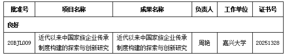 近日,公司周艳副教授主持的国家社科基金一般项目“近代以来中国家族企业传承制度构建的探索与创新研究”顺利通过验收审批,鉴定等级为良好。