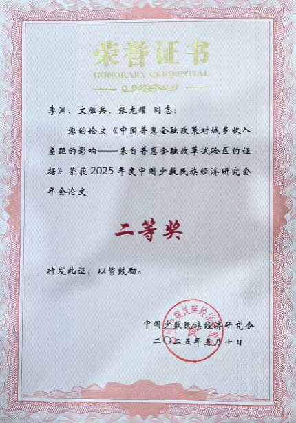 【科研动态】李渊博士合作论文荣获中国少数民族经济研究会2025年度年会论文二等奖