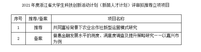 2021年度浙江省老员工科技创新活动计划(新苗人才计划)评审拟推荐立项项目的公示
