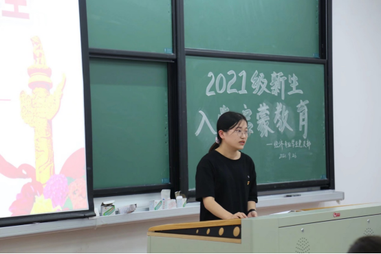 经济专业员工党支部沈逾莹同志向新生介绍了支部概况、党员发展的基本程序和相关要求,同时对入党申请书和思想汇报的规范性进行了强调。