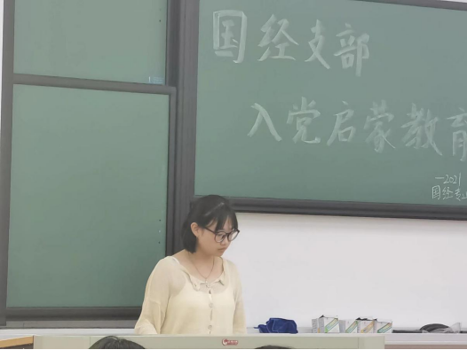 国经专业员工党支部吴伶笑同志介绍了党支部设置、队伍概况,她告诫新生要端正入党动机,树立正确入党动机,才有持久不衰的动力,才能够在日常工作和生活各方面更加严格要求自己。