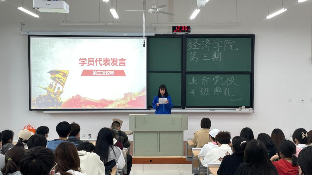 在庄严的国歌声中,开班典礼拉开序幕。通过前期的资格筛查、自主报名、团支部推荐,本期党校共吸纳了本科生共计80余位学员参加,党校班主任李胜宣读本期党校学员名单,并向学员们介绍了党校纪律、课程安排。金融211杨颖诺作为学员代表,从青年老员工学党史悟初心的角度出发,号召大家从思想、行动、作风等方面不断向党组织靠拢,要不负时代、不负韶华、不负党和人民的殷切期望,在担当中历练,在尽责中成长。