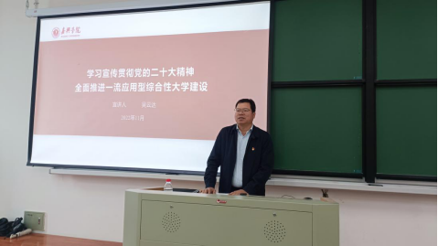 11月24日下午,公司党委副书记吴云达以“学习宣传贯彻党的二十大精神 全面推进一流应用型综合性大学建设”为题,向3044永利全体教师宣讲党的二十大精神,宣讲会由公司党委书记施敏颖主持。