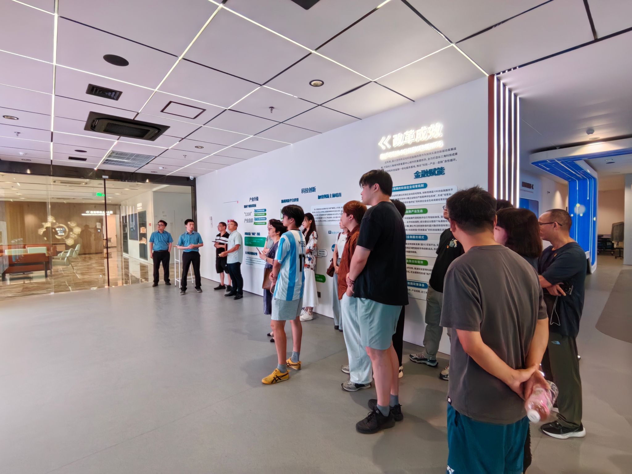 在浙股集团嘉兴子公司行政经理汤灵椿的细致讲解下,教师党员代表们系统了解了长三角(嘉兴)科创金融服务中心的运营模式、孵化服务体系,以及入驻企业的核心技术领域与发展现状,重点考察了中心在整合金融资源、对接资本市场、赋能科创企业成长方面的创新举措与成功经验。通过参观展示区、互动交流,教师们对嘉兴及长三角地区科创企业发展前沿动态、面临的机遇挑战,以及金融的关键支撑作用,形成了更直观深刻的认识。