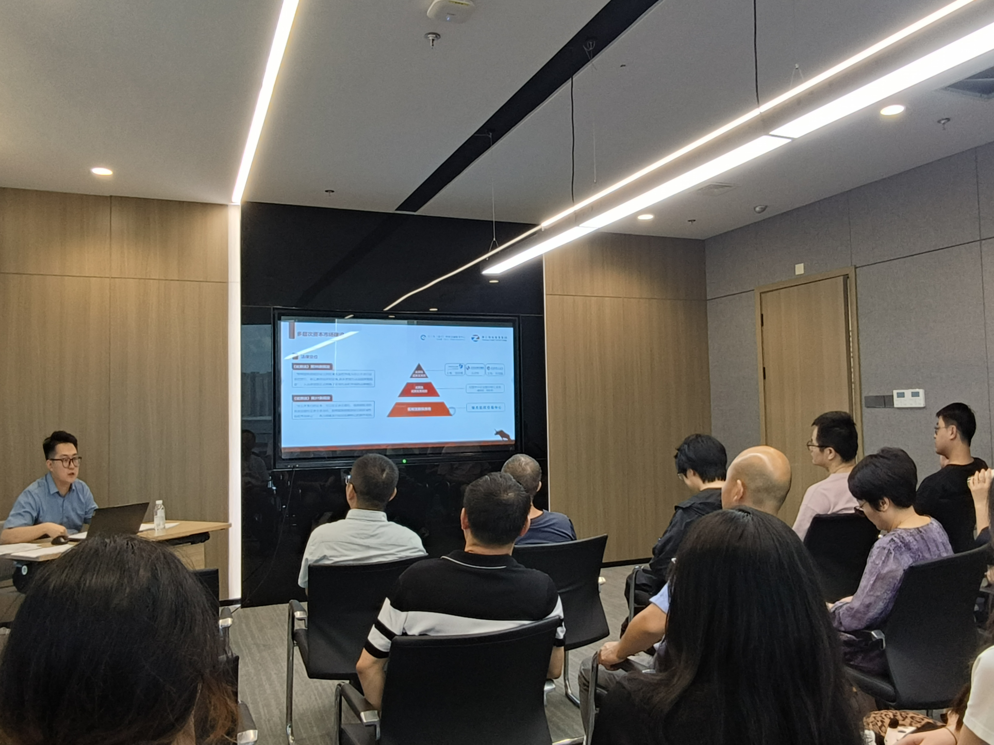 座谈环节气氛热烈,公司运营经理李哲阳结合具体案例,剖析了科创企业不同成长阶段的金融服务差异化需求,以及运用股权融资、债权融资、上市辅导等工具助力企业加速发展的实践路径,并结合一线经验对公司金融人才培养提出宝贵建议。