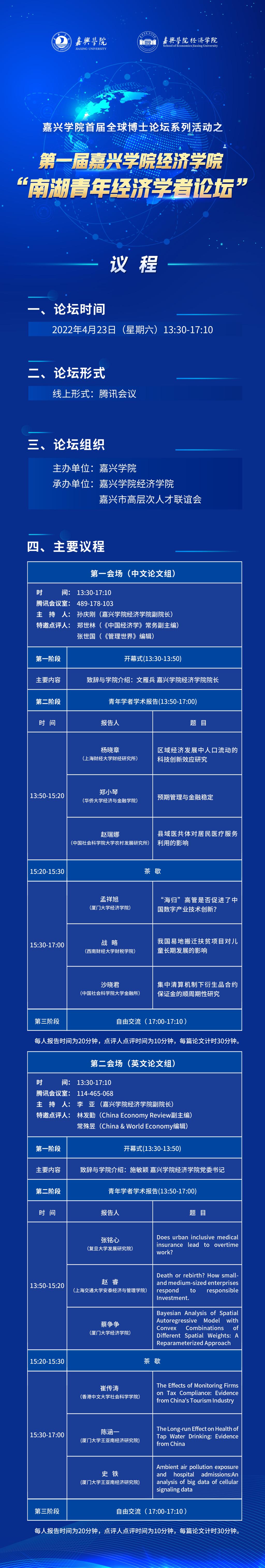 【会议通知】第一届嘉兴公司3044永利“南湖青年经济学者论坛”