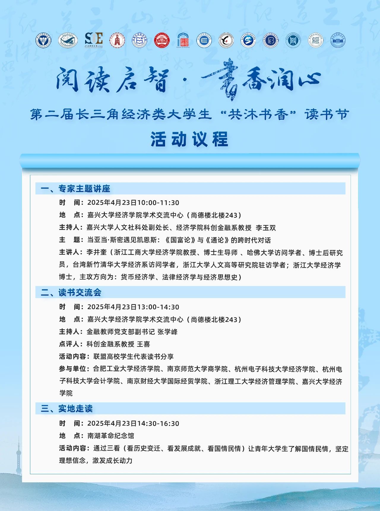 【活动预告】第二届长三角经济类老员工“共沐书香”读书节来啦!